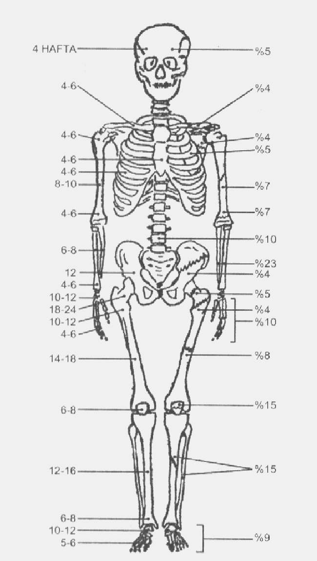Dıştan veya içten etki eden kuvvetlerle kemik dokusunda oluşan ayrılmaya veya bu sebeplerle kemiğin anatomik bütünlüğünün ve devamlılığının bozulmasına “Kırık” denir. Kemikteki kırılma etki eden kuvvetlerin derecesine ve kemiğin şoku abzorbe edebilme yeteneğine göre ufak bir çatlaktan (Fissür), bir veya bir çok kemiğin kırılmasına ; hatta komşu eklemlerde çıkık eşlik etmesine (Kırıklı-çıkık) kadar değişiklik gösterebilir. Kırığı oluşturan kuvvet sadece kemiği kırmayıp , beraberinde kemiğin etrafındaki deri, kaslar , tendonlar , ligamentler, damarlar, sinirler ve komşuluğundaki organları da yaralayabilir. Kırığı oluşturan sebepler ile kırık lokalizasyonları yaşlara göre farklılıklar gösterir. Yeni doğan döneminde doğum travmaları, çocuklarda düşme, dövülme ve trafik kazaları, gençlerde spor ve trafik kazaları, orta yaşlarda trafik ve iş kazaları ve ileri yaşlarda düşmeler ve tümöral olaylar kırık yapan başlıca nedenlerdir. Yeni doğanlarda doğum travmasına bağlı olarak en çok klavikula, femur cismi , humerus kırılır. Çocuklarda humerus suprakondiler kırıkları başta olmak üzere dirsek çevresi ve önkol kemikleri ile femur cismi en çok kırılır. Genç ve orta yaşlarda tibia, femur ve radius distali en çok kırılan bölgelerdendir. İleri yaşlarda femur boynu, trokanterik bölge, humerus proksimali ve radius distali en çok kırık görülen bölgelerdendir. Kırık tipleri ve sınıflandırma 1) Kemik doku sağlamlığına göre: * Normal kemikte (Travmatik) kırık * Hastalıklı kemikte (Patolojik) kırık * Stress (Yorgunluk) kırığı 2) Kırık hattının, kemiği çevreleyen deri yada mukoza yoluyla, dış ortamla ilişkide olup, olmamasına göre: * Kapalı kırıklar * Açık kırıklar 3) Kırık oluşturan kuvvete göre: * Direkt mekanizma ile olan kırıklar * İndirekt mekanizma ile olan kırıklar * Direkt ve indirekt mekanizma kombinasyonu ile olan kırıklar 4) Kırık sayısına göre: * Tek kırık hattı * Multiple kırık hattı 5) Kırığın derecesine ve kırık hattına göre: a) Ayrılmış (deplase) kırıklar * Transvers kırık * Oblik kırık * Spiral kırık * Kopma kırığı * Parçalı kırık b) Ayrılmamış (non-deplase) kırıklar * Çatlak (fissür, linear kırık) * Yaş ağaç (green stick) kırığı * Torus kırığı * Çökme kırıkları * Kompresyon (sıkışma) kırıkları * Dişlenmiş (impakte) kırıklar * Epifizin ayrılmamış kırıkları 6) Kırığın kemikteki anatomik lokalizasyonuna göre: * Proksimal bölge kırıkları (Proksimal epifizer ve metafizer bölge ; trokanterik, femur boynu, tibia kondil, kollum şirurjikum vb) * Cisim (shaft) kırıkları (Diafiz bölgesi ; 1/3 üst, 1/3 orta, 1/3 alt bölge olarak ifade edilir) * Distal bölge kırıkları (Distal epifizer ve metafizer bölge ; suprakondiler, malleoler, pilon, Colles vb) * Epifiz bölgesi kırıkları (Çocuklarda fizisler kapanmadan önceki dönemde fizis hattını etkileyen epifiz ve metafiz kırıkları anlaşılır) * Kırıklı - çıkıklar (Kırıkla birlikte kırığın olduğu kemiğin katıldığı eklemde de çıkık olması) 7) Kırılan kemiğin histolojik yapısına göre: * Spongiöz bölge kırıkları * Kortikal bölge kırıkları 8) AO sınıflaması: AO Grubunun yapmış olduğu sınıflama ile uzun kemikler önce numaralandırılır. Buna göre humerus 1 , önkol 2 , femur 3, tibia 4 numara ile kodlandırılır (Şekil.1). Kemik kırıkları kendi içinde de proksimal bölge kırıkları 1, cisim kırıkları 2, distal bölge kırıkları 3 numara ile kodlandırılır. Her bölgedeki kırık A-B-C olarak kategorize edilir. Bu gruplar kendi arasında da A1-A2-A3 ; B1-B2-B3 ; C1-C2-C3 olarak alt gruplara ayrılır (Şekil.2) . Ayrıca her alt grup tekrar 1-2-3 eklenerek en alt gruplara ayrılır.Buna göre örneğin cisim kırıkları şöyle tarif edilir: * A : Basit kırıklardır. 1. Spiral (1-2-3) 2. Oblik (1-2-3) 3. Transvers (1-2-3) * B : Kamalı kırıklardır. 1. Spiral kamalı (1-2-3) 2. Bükülmeli kamalı (1-2-3) 3. Parçalı kamalı (1-2-3) * C : Kompleks kırıklardır. 1. Spiral (1-2-3) 2. Segmentli (1-2-3) 3. Çok parçalı, irregüler (1-2-3) Bu sınıflamaya göre femur distal bölge (3.3) kırıkları ise şu şekilde sınıflandırılır (Şekil.3): * A : Ekstra-artiküler kırıklardır. 1. Basit ekstra artiküler (1-2-3) 2. Metafizeal kamalı ekstra artiküler (1-2-3) 3. Metafizeal kompleks ekstra artiküler (1-2-3) * B : Parsiyel artiküler kırıklardır. 1. Lateral kondil kırığı , sagittal (1-2-3) 2. Medial kondil kırığı , sagittal (1-2-3) 3. Kondil kırığı, frontal (1-2-3) * C : Komplet artiküler kırıklardır. 1. Her iki kondil ve metafizde basit kırık (1-2-3) 2. Her iki kondilde basit, metafizde çok parçalı kırık (1-2-3) 3. Eklem içi ve metafizde çok parçalı kırık (1-2-3) AO sınıflaması tüm kırıkların kapsamlı bir şekilde dökümante edildiği faydalı bir sınıflamadır. Kırıkları oluşturan sebepler ve kırık oluş mekanizması Travmatik yolla oluşan kırıklarda görülen başlıca sebepler : Trafik kazaları (araç içi veya araç dışı) , düşme , çarpma, yüksekten düşme, ev içi kazalar ve düşmeler, iş kazaları, spor kazaları ve yaralanmaları , göçük altında kalma (deprem , maden kazaları vb) , üzerine bir şey düşmesi, ateşli silah yaralanması , kesici delici alet yaralanması, darpa maruz kalma ve dövülme ve yenidoğanlarda görülen doğum travmalarıdır. Patolojik kırıklarda kemikte bir hastalık mevcuttur ve kırık çoğu zaman basit travmalarla veya bazen travma olmaksızın kendiliğinden meydana gelir. Altta yatan hastalık benign tümör, primer veya sekonder malign tümör , osteoporoz, osteomalazi, enfeksiyon vb olabilir. Stress kırıklarında ise sürekli tekrarlayan zorlamalar ve yorgunluk sonucunda bariz bir trav